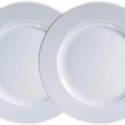 Dinner plates with a very wide rim look great at formal dinner plates. Plates with no rim are perfect for everyday use.